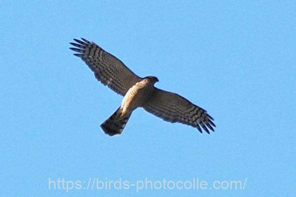 ハイタカ(タカ目タカ科ハイタカ属):一般にオオタカよりやや小さいがツミより大きいく♀は♂より少し大きい。翼指は6枚。