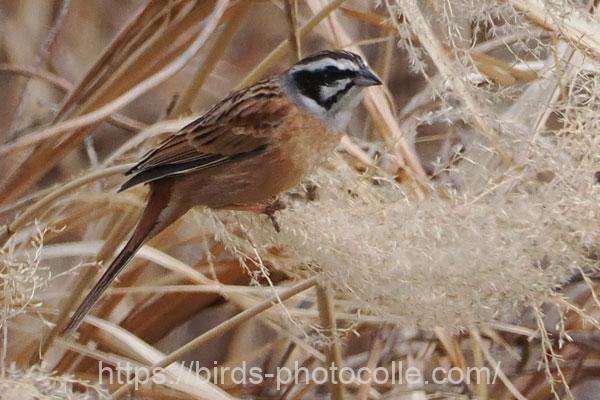 ホオジロ(スズメ目ホオジロ科):白い頬が特徴的で、特にオスの顔は白と黒のコントラストがはっきりしています