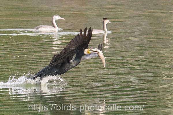 勅使池のカワウ(カツオドリ目ウ科):通年見る事ができ個体数は非常に多い。首周辺の白は婚姻色