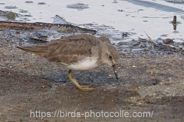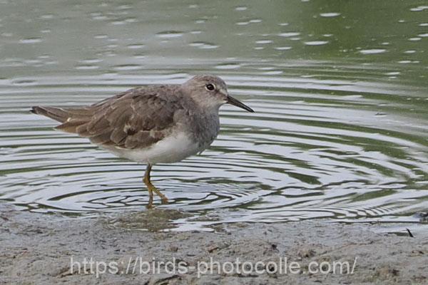 《概要》成鳥冬羽 足の色が黄緑色、尾の両端が白い小型の渡り鳥で日本には旅鳥として、主に秋に飛来します。シギの仲間では最小クラス