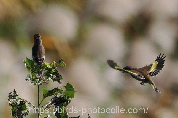 勅使公園のカワラヒワ(スズメ目アトリ科)2023.10~ 小さな群れで移動しているようです。6月頃には幼鳥を観察出来ます。