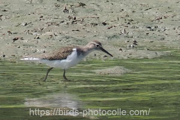 勅使池のイソシギ(チドリ目-シギ科)イソシギは、その特徴的な尾の振り方や飛び方から、他のシギの仲間と見分けることが比較的容易な鳥です。勅使池の水位が下がり干潟ができると飛んできます。