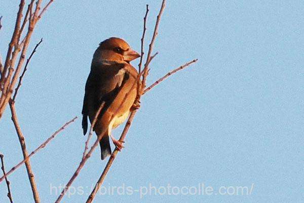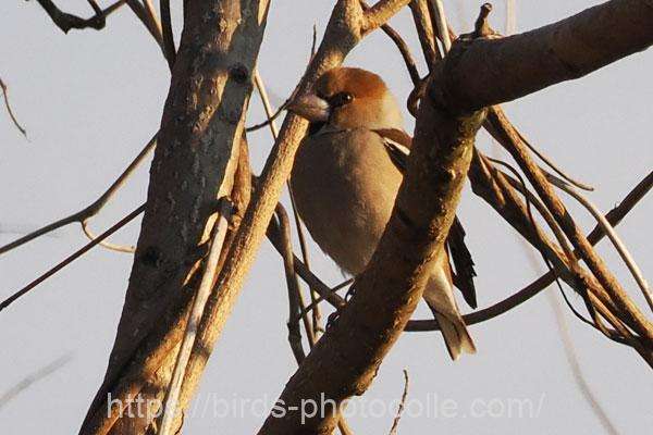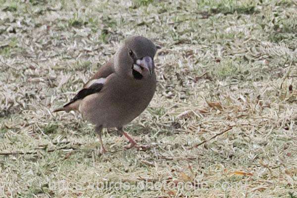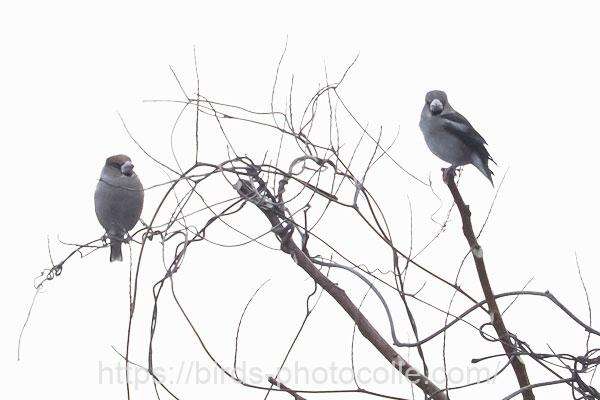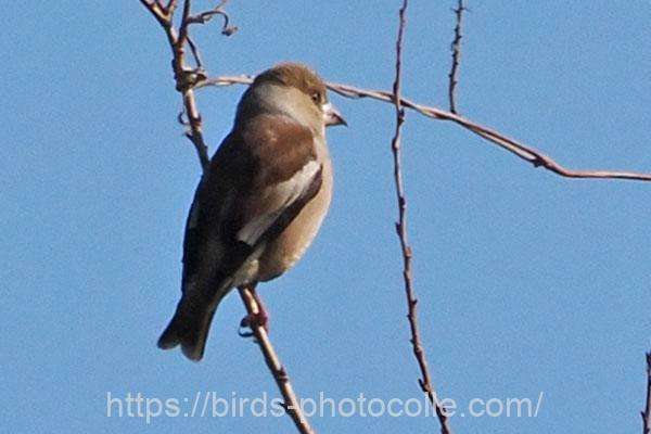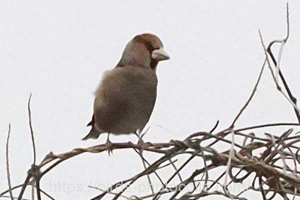 シメ(スズメ目アトリ科)冬鳥:大きな嘴と怖そうな目、結構イカツイ顔ですね 尾は短め。アトリ、カワラヒワの仲間です。
