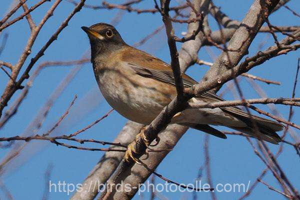 シロハラ(スズメ目ツグミ科):下嘴とアイリングがオレンジ色