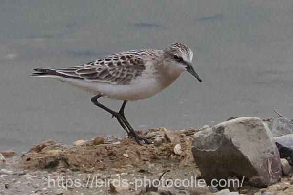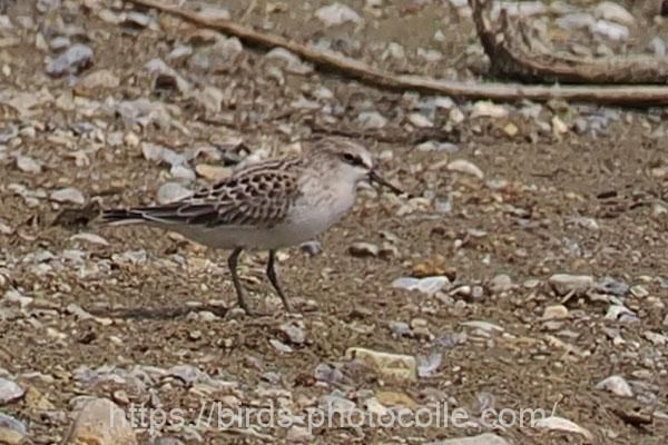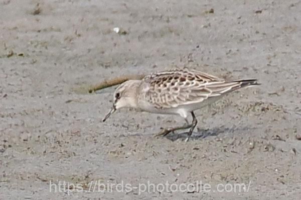 トウネン(チドリ目シギ科オバシギ属)2025.09.19初観察 2025.09.16に観察したオジロトウネンによく似ていますが、背に赤褐色味があり足が黒いことで識別できそうです