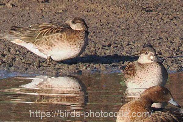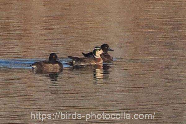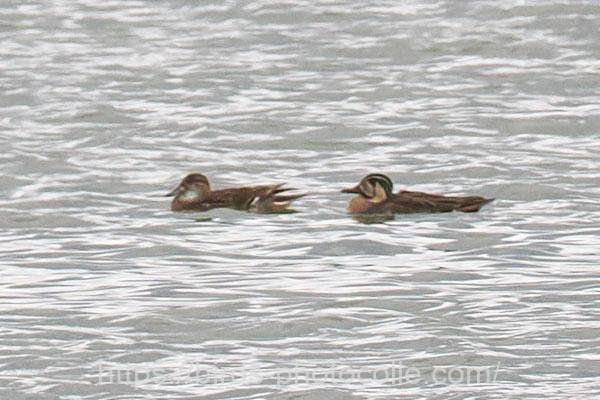 トモエガモ(カモ科トモエガモ属):トモエガモ画像第3集 ♂の顔に複雑な模様があり、これが「ともえ紋」のように見えることから名付けられました。♀は嘴の基部に白い丸斑があります
