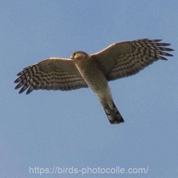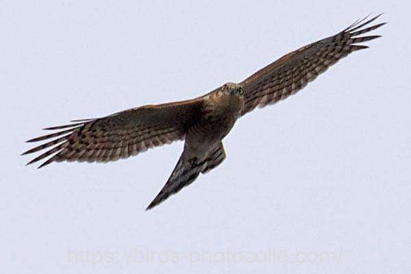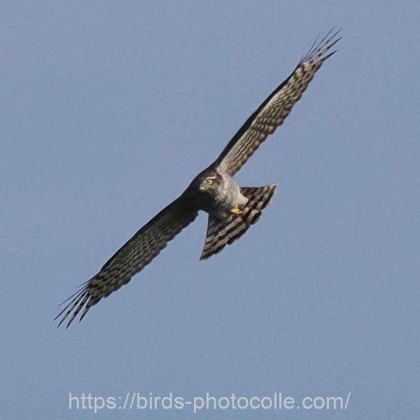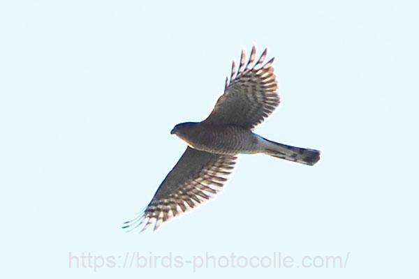 ハイタカ(タカ目タカ科ハイタカ属):一般にオオタカよりやや小さいがツミより大きい。翼指は6枚。