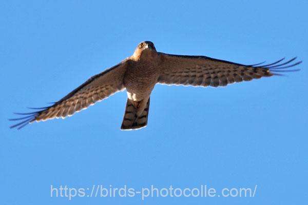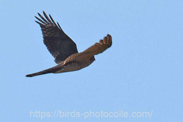 ハイタカ(タカ目タカ科ハイタカ属):一般にオオタカよりやや小さいがツミより大きいく♀は♂より少し大きい。翼指は6枚。