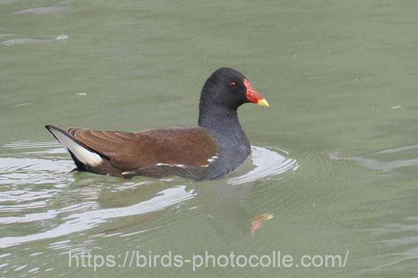 勅使池のバン(ツル目クイナ科):オオバンに比べると個体数は少ないが、良く見かけます。警戒心も薄そうで撮りやすい。額板は赤く嘴迄続くが、嘴の先端は黄色。