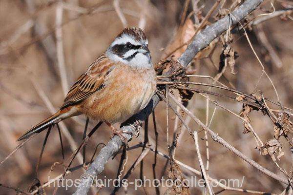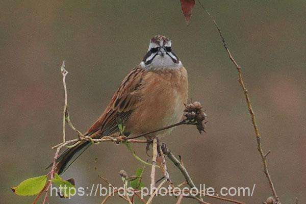 ホオジロ(スズメ目ホオジロ科):白い頬が特徴的で、特にオスの顔は白と黒のコントラストがはっきりしています
