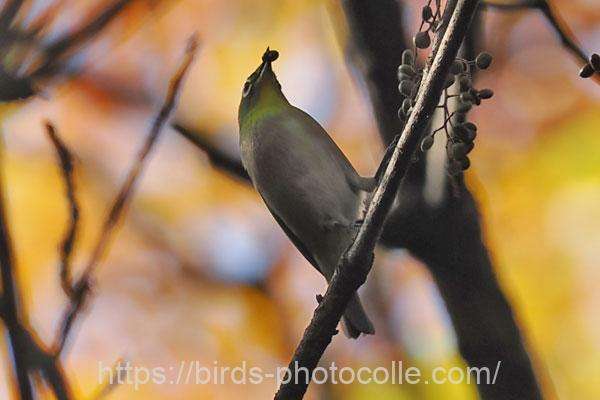 メジロ(スズメ目メジロ科):目の周りに白のリングがあるお馴染な野鳥。群れで移動しています