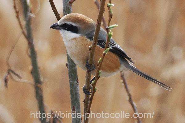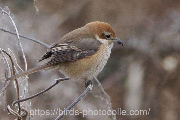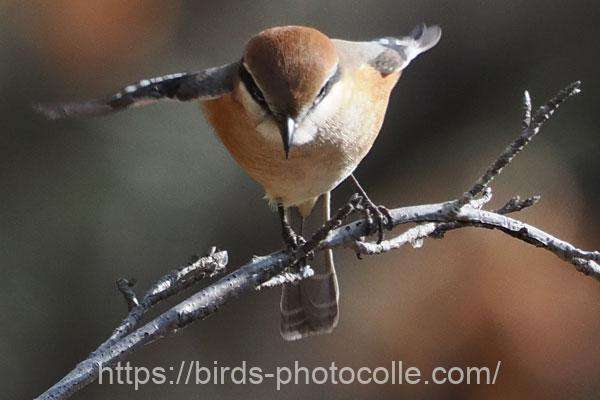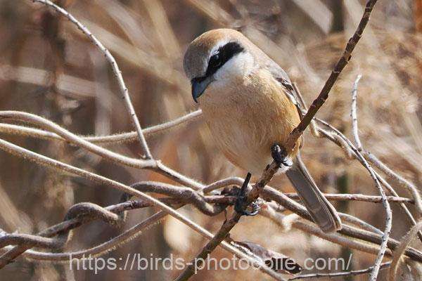 勅使池の野鳥 モズ(スズメ目モズ科)鋭い嘴と過眼線が特徴です。昆虫やネズミ・小型の野鳥も捕食します
